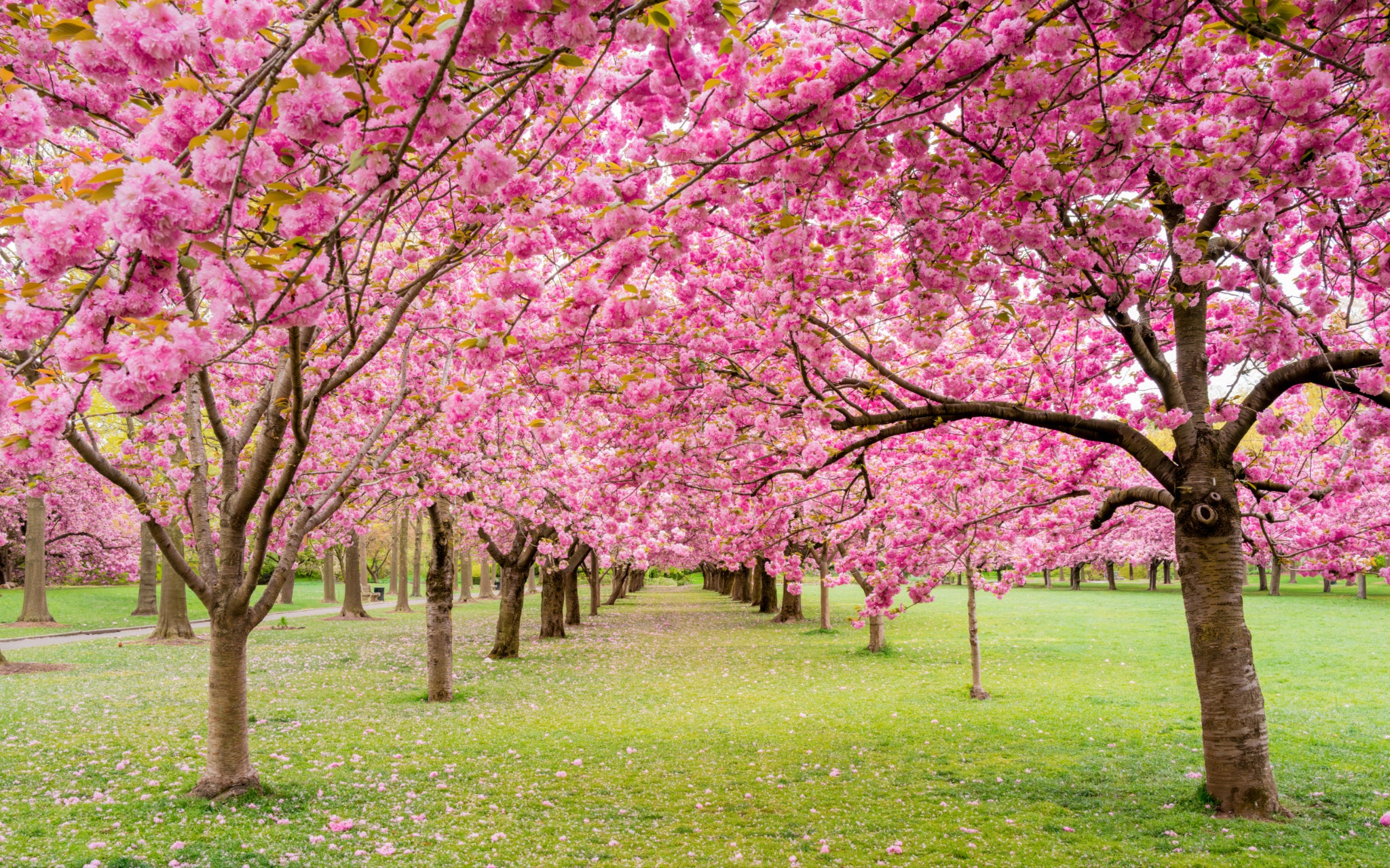 A calm view of Mount Fuji, framed by spring branches just steps away from the busy path.