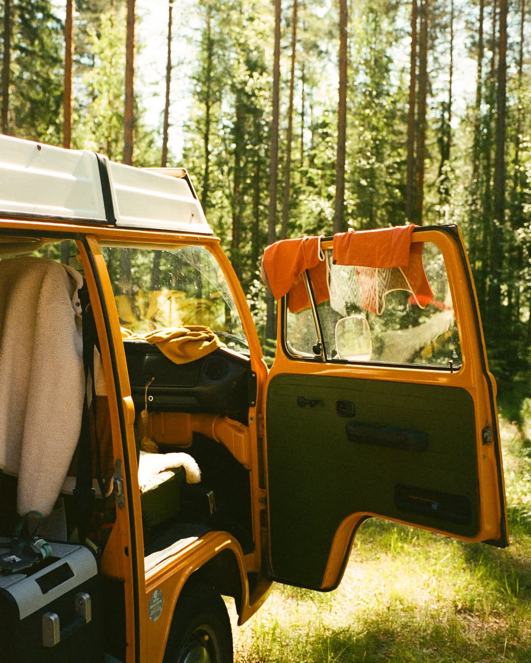 A yellow van parked deep in the Scottish Highlands. A film-shot memory of sun, swims, and slow travel off the beaten path.
